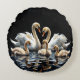 Swan Family on Black Lake Artwork Round Cushion
