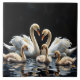 Swan Family on Black Lake Artwork Tile