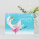 Girls swan on lake with stars third birthday invitations, featuring a cute whimsical ballet dancing swan with pink tutu watercolor painting. Personalise with your own birthday girls details and photo. Background colour can also be changed if required currently aqua teal. Other matching ballerina swan items available. Unique watercolor painting and design by Sarah Trett www.sarahtrett.com for www.mylittleeden.com on zazzle.