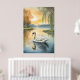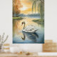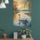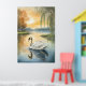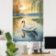 Immerse yourself in the tranquillity of nature with our stunning poster featuring a graceful swan gliding serenely across a peaceful lake. The elegant swan, with its pristine white feathers, exudes a sense of grace and beauty against the backdrop of calm waters reflecting the soft hues of the sky at dawn. The soothing colour palette of pastel blues and gentle greens creates a harmonious and peaceful atmosphere, perfect for bringing a touch of serenity to any space. Let this enchanting scene of a beautiful swan on a tranquil lake transport you to a place of calm and relaxation every time you gaze upon it.