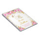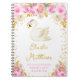 This cute and whimsical notebook features an elegant swan and pink roses floral arrangements with faux gold glitter confetti. The text combines handwritten script and sans serif fonts for a stylish and modern look. It can be personalised with your baby's birth stats, such as name, size, date and time of birth, or if you would like to give it as a shower gift you are able to edit and remove text.