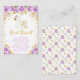 This cute and whimsical baby shower book request features an elegant swan and purple roses floral arrangements with faux gold glitter confetti. The text combines handwritten script and sans serif fonts for a stylish and modern look. This is perfect for a swan themed baby shower.
