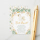 This cute and whimsical baby shower book request features an elegant swan and sage green roses floral arrangements with faux gold glitter confetti. The text combines handwritten script and sans serif fonts for a stylish and modern look. This is perfect for a swan themed baby shower.