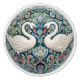 The "Swan Serenade Ceramic Knob" showcases a harmonious scene of two swans, their necks elegantly curved to form a heart shape, surrounded by a rich tapestry of floral and foliage motifs. The intricate details of the swans' feathers and the surrounding leaves and flowers are highlighted with subtle golden accents, adding depth and a touch of luxury. The background features deep blue hues that enhance the vibrant colours of the floral elements, creating a striking contrast. The design embodies the flowing, organic forms characteristic of the Art Nouveau movement, making this knob a perfect blend of natural beauty and artistic craftsmanship. Ideal for those who appreciate fine design and the elegance of swan imagery, this ceramic knob will elevate the aesthetic of any room with its refined and serene presence.