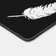 Swan White Feather & Script Calligraphy on Black Desk Mat