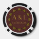 Give the guests, bridesmaids, groomsmen, or anyone else attending or helping with your elegant wedding or special event a fun treat with these customisable poker chips. One side of the poker chip features a gold Art Deco wheel, with geometric and fan-like designs, on a brick red background. The other side has a similar Art Deco outer wheel as a frame around a sample set of initials and date. The sample text can be customised with your own details or a special message of your choice to create a unique and personal token to commemorate your big day. This design will match any product from the Swanky Art Deco in Red line so that you can make your dazzling wedding or special event as coordinated as you like.