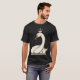 I give wanted to give this a 4 instead of a 5 because these Basic DARK T0shirts run unexpectedly SLIM or Narrow. Which is great if you do not have a potbelly, but I have a paunch. It isn't the shirt's fault that I've got a beer belly. The design and shirt itself is a quality cotton shirt. The color is more of a deep purple, but still a very pretty color. The Basic DARK T-shirts run a bit SLIMMER than the Basic Ts. The neck is a fraction narrower (or seems to be narrower) also. I'm a paunchy middle-aged woman and my neck is 12 inches (31cm) thick and the neckline fell about the same as in the photo of the man, and I had the desire to tug it a bit. So if you're a thick necked man or like loose shirts, be aware these are slimmer shirts. Once I get rid of my lockdown paunch it'll look great. The shirt washed well in cold water with no apparent bleeding. We don't have a dryer, so it hung dry. Did not shrink. Love the colors and the design. The design looks smaller on my shirt than it does on the model on-line. But still, it looks good on the shirt. The printing looks as it does on the model, just the size seems fractionally smaller. Washed garment in cold water, hung dry and design appeared unaffected.