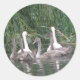 This sheet of round stickers features a beautiful photograph of a pair of adult swans and their 4 cygnets swimming off into the distance along a calm peaceful river.