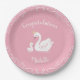 Swans Baby Shower Bird with Crown Theme Pink Paper Plate