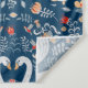 Swans, fish, flowers on a blue background. Decorative floral pattern with ornaments and patterns in folk style.