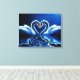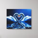 Beautiful Swans creating a heart with the way their beaks are together- a fantasy painting of these pretty birds sitting on water with an abstract reflection.