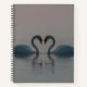 Awesome photograph of two swans swimming head to head creating the illusion of a heart on the water. They are on an early morning misty lake together,