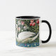 Swans on pond with floral William Morris Style Art Mug. This is another 100% Snuggle Hamster Designs.