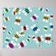 A swarm of cute cartoon bees in different colours. Image available on various gifts and products. Customise and change the background colour or add text if you need to.