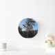 Swaying Palm Tree Under a Clear Sky Round Clock