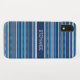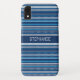 This Christmas phone case features a sweater style blue and white stripe design. Personalise it with a name.