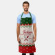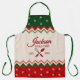 Really cute sweater pattern Christmas apron for him or her. Features a forest green, rich red, and off white sweater textured pattern with "Jackson - Head Chef est. 1980" text and crossed spoon and whisk utensil.