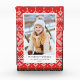 Display your favourite family photo in style with an acrylic holiday photo block. The design features a placeholder for your vertical photo framed with a red and white sweater knit pattern. Personalise the elegant photo block with your custom text and a photo to create a one of a kind gift to give to loved ones or display in your own home.
