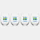 Personalised stemless wine glasses, in a set of four, shows the blue and yellow Swedish flag with the word SWEDEN below, in blue, snow capped letters. Above is a place to add names in blue letters. Each glass can have a different name, or all glasses can have the same name. Cool for a party celebrating Sweden. Lovely housewarming gift for a favourite Swede. Fun to use at clubs, travel groups, and family reunions. Thoughtful Mother's Day or Father's Day gift to celebrate Mum or Dad's heritage.