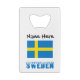 The blue and yellow Swedish flag has the word SWEDEN below, in blue, snow capped letters. Above is a place for you to add your name so you can personalise your item. Or, add someone else's name for a customised gift.
