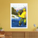 Vintage travel poster for Sweden showing a fisherman in the outdoors.