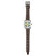 I was uncertain about the size being too small but it looks good. The case looks like aluminum (not shiny) and the time is easy to see. I changed the band because the leather doesn't go with my lifestyle.a. Exactly what I expected, nice yellow. It grabs peoples attention.