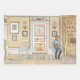 This design features three high-quality images of artwork by the Swedish painter Carl Larsson (1853–1919), who was a member of the Arts and Crafts movement. The first artwork shows a young girl watering plants growing in pots on a windowsill; she is holding a green watering can in her hands as she dutifully caries out the task; many of the plants are already growing tall and producing flowers. The second artwork shows a boy sitting in the corner of an elegant drawing room; he looks sad and disheartened, perhaps because he has been chastised and is being punished for bad behaviour; it is a scene of ordinary family life in a fashionable Swedish home of the Victorian era. The third artwork shows an elegant domestic scene in a stylish living room; a dog is sleeping calmly on the rug, beside a blue-and-white striped sofa.
