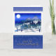 Merry Christmas greeting card written in Swedish. Cover text translation: "Merry Christmas and a Happy New Year". Inside translation: "Peace and joy to you". Old world small villages in the foothills, basking in moonlight and icy snow fall. Art, image, and verse copyright © Shoaff Ballanger Studios.