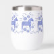 A traditional Dala Horse from Sweden in indigo blue and white. Scandinavian folk art painting in Watercolor. Original art by Nic Squirrell.