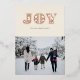 This elegant real foil winter holiday card features your favourite photo and a message of Joy in rose gold on soft ecru with a Swedish twist. Add another photo and longer message to the back for more personalised details.