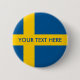 Swedish flag custom round pinback buttons. Button with flag of Sweden. Patriotic Scandinavian design. Custom text template. Great for party and more.