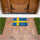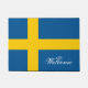 Swedish flag door mat with custom welcome text for Sweden home or store. Blue and yellow colours. Scandinavian home decor. Make your own custom door mat for country chic home, restaurant, hotel, business, office, company, shop etc. Add your own welcome message, family name, monogram, store name or funny quote. Cute gift idea for new home housewarming party. Big letters typography. Custom colour background. Vintage rustic typography. Personalizable doormat sign template. Create your own entry mat / rug for front door / entryway or hall. Customisable home decor / decorations for your house or store.