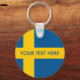 Swedish flag round button keychain for Sweden. Country flag design with personalised text. Scandinavian pride.