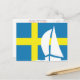 Swedish Flag Sailing Boat/ Yacht Nautical Postcard. White sailing yacht silhouette and Swedish flag Sweden nautical postcard.