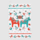 This golf towel has a Swedish folk dala horse design with matching folk art flowers in Sweden's flag colours of teal and red on white background. At the top and bottom are a row of matching smaller dala animals and flowers. You can make the background pattern on this towel smaller or larger.