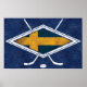 Diamond shape logo with crossed hockey sticks and puck, and the flag of Sweden set in the centre. Cool destroyed look! Perfect for Swedish ice hockey fans and players. Great for t-shirts, hoodies, hats, stickers, buttons, keychains, mugs and so much more. Items can be personalised, so you can add names, numbers etc to anything!