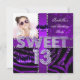 Sweet 13 13th Birthday Zebra Glitter Purple Lips Invitation