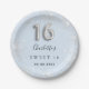 Sweet 16 baby blue silver glitter dust name paper plate