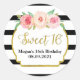 Sweet 16 Birthday Black Stripes Gold Pink Floral Classic Round Sticker