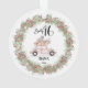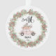 Sweet 16 Signature Script Car Greenery Ornament. Make your daughter's Sweet 16 memorable. This round ornament features a handwritten signature script and watercolor hand-painted vintage pink holiday car bordered with a greenery wreath. The photo, color of the fonts, and typeface can be customized by clicking on personalize.