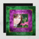 This fun party invitation is perfect for your Birthday Mardi Gras party or masquerade ball. The background is a distressed emerald green with floral accents. There is a smaller border background in purple with a gold border with corner accents. In the centre there is a place for your photo. Very fun and elegant! Your party information goes towards the bottom.
