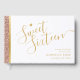 Rose gold glitter and gold sweet 16 birthday party guest book for the teenager celebrating their sixteenth birthday.