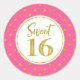 Sweet 16 Birthday Pink White Gold Dots Classic Round Sticker