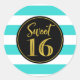 Sweet 16 Birthday Turquoise Gold White Stripes Classic Round Sticker