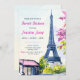 Sweet 16 Birthday Watercolor Floral Eiffel Tower Invitation