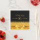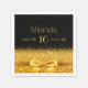 Elegant, classic, glamourous and feminine style napkin for a 16th birthday party. A gold coloured ribbon and bow with faux golden glitter and sparkle, a bit of bling and luxury. Black background. Templates for name, age 16 and dates. Date of birth and date of the anniversary or party date.
