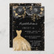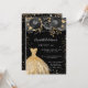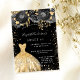 Sweet 16 black gold glitter dress florals party invitation