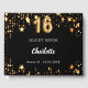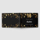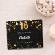 A stylish black background with faux gold stars. Add your name, and text. Age number is written with a balloon style font.