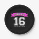 Sweet 16 Black & Pink Sports Birthday Party Paper Plate
