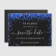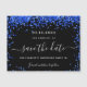 A black background decorated with royal blue confetti. Personalize and add a date and name/age. The text: Save the Date is written with a large trendy hand lettered style script.